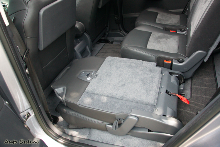 與第二排座椅配合之下,因為均可獨立翻倒或立起椅背,所以可以依照乘坐人數或行李放置的不同需求做多種彈性變化,比方說放衝浪板這類長形物品就只要放倒第二、三排單側座椅就好。