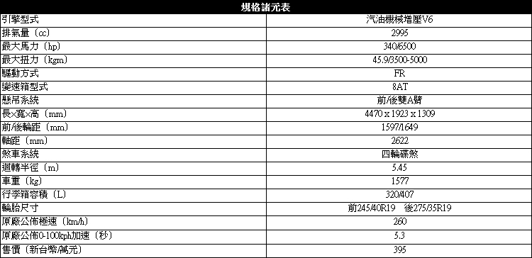 優雅中帶有暴力![]() ▲順順的快速加速,符合F-Type優雅的外觀。台灣所販售的F-Type Coupe有一般版本與R版本,R版本搭載5.0升V8汽油機械增壓,最大馬力550hp/6500rpm與最大扭力69.3kgm/3500rpm。一般版本則是3.0升V6汽油機械增壓,最大馬力340hp/6500rpm及最大扭力45.9kgm/3500~5000rpm,變速箱同為Quickshift 8速手自排,前置引擎後輪驅動。一般版本F-Type Coupe靜止加速只需5.3秒,極速設定在260km/h;但比較好奇的是,敞篷版本3.0升V6機械增壓,最大馬力可以達到380hp,而Coupe只有340hp。 ![]() ▲跑車跑得快,大部分人都只能看到車尾,F-Type故意設計美臀給人欣賞。V6引擎3.0升配置,最大馬力340hp與8速手自排變速箱統搭配,不能說它完美,但足以被稱之為跑車。加速力道明顯,轉速攀升快速,隨之而來是越來越快的車速;排氣系統沒有R版本的主動式跑車排氣管,在發動瞬間或者拉高轉速時,還是會發出低吼聲浪,與跑車形象極為匹配。駕駛在山路上,F-Type Coupe給人一貫英式風格,不是說它不能開快,而是它開快起來都很優雅,不會出現太多跟車搏鬥的畫面,也就是穿著西裝一樣能成為稱職的賽車手。