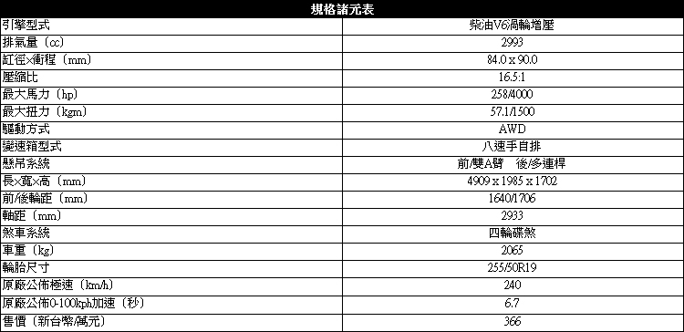 ▲3.0升柴油引擎輸出一般道路表現優異,但是在有坡度的山路,能感覺到引擎降得快、升的慢。