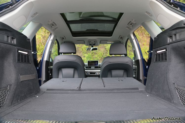 對於駕乘者的體貼![]() 新一代Q5座艙設計和以往有非常大的改變,最大的不同點在於前代還是以中控台為主的傳統布局,採取內嵌螢幕、音響和空調面板堆砌排列,MMI旋鈕位在排檔後方;而在二代車型,換上新潮的立式平板螢幕,空調面板依舊保留類比旋鈕,但液晶顯示不再侷限小小的顯示幕,而以更直覺的方式呈現,至於音響控制則完全整合進MMI,只留下小小的音量控制鈕在排檔座。新的觸控板和MMI旋鈕安排位置顧及了人體工學,剛好就是把手腕放在排檔頭上可以直接用手指操作,比起過去懸空的方式更輕鬆,也不再需要低頭找到位置。 ![]() ▲全景電動天窗開啟機會不多,卻仍能提供明亮的視野。![]() ▲後座採用真皮包覆,並以細膩縫線加為點綴。![]() ▲行李廂容積標準模式是550公升,最大可調整到1550公升。![]() ▲含體感啟閉功能的電動尾門,已經在新世代Q5列為全車系標準配備。