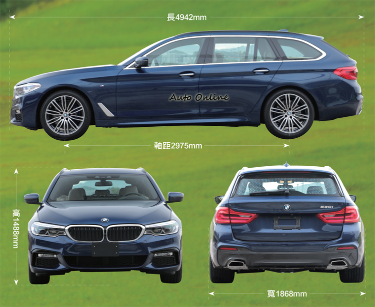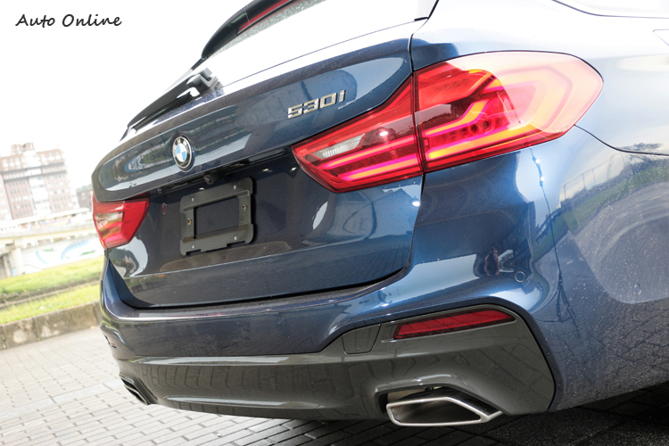 運動旅行風M Sport套件加持![]() ▲車頂架噴黑處理,只要再選購兩支橫桿就能在車頂安置物品。台灣導入的5系列Touring有520d Touring Luxury、520i Touring Luxury、530i Touring M Sport等汽、柴油動力編成,外型原廠已幫各車型配好不同套件,像是此次試駕的530i Touring就搭載M Sport運動化套件。車頭造型與Sedan沒有太大差異,家族化的雙腎形水箱護罩內有主動式進氣葉片,需要散熱的時候打開,不需要關閉減低風阻。 ![]() ▲全車系標準配備LED頭燈(試駕車選配轉向頭燈與遠光燈輔助)、日間行車燈與前霧燈。車側線條一直以來都是旅行車的成敗關鍵,5系列Touring由專業工法精雕細琢的車身折線不僅彰顯BMW極致鈑件工藝,更刻劃出整體的立體、流線的動感外貌。M款跑車化懸吊比起一般車型降低一公分,試駕車還選配了M款雙輻式19吋鋁圈,更加深了M Sport跑格化的靈魂。 ![]() ▲試駕車還選配了M款雙輻式19吋鋁圈,更加深了M Sport跑格化的靈魂。![]() ▲L型LED導光條尾燈設計簡單俐落,令人難以錯認這帥氣的背影。