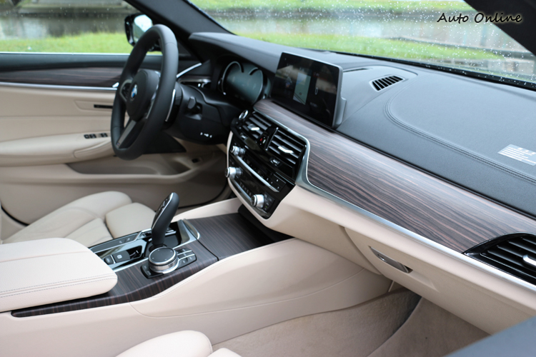 座艙內以駕駛為導向設計,來到G世代車型內裝做了許多精進與改變,但造型幾乎維持BMW家族特徵。駕駛者前方為12.3吋多重行車模式儀表板,改用液晶螢幕顯示後,呈現方式多元不受到傳統指針侷限,不同行車模式下有不同樣貌。再來中控台結合10.25吋觸控螢幕,最新iDrive 6.0系統以圖像式介面不僅更便於操作,也可依駕駛需求自行設定客製化選單順序,除此之外透過位於前座中控台上方的感應器,駕乘者能以簡易手勢輕鬆下達接聽或拒絕來電、音量調整與自訂指令(如關閉iDrive螢幕、設定導航等)。 ![]() ▲淺色的內裝顏色營造出高質感座艙氛圍。![]() ▲它的飾板是我很喜歡的原木色澤,不會容易留下指紋也不易刮傷。![]() ▲寬敞後座再配上11種顏色的環艙照明燈光組,夜晚時更顯魅力。![]() ▲車內M款多功能真皮方向盤,左右兩邊多功能按鍵方便就手。