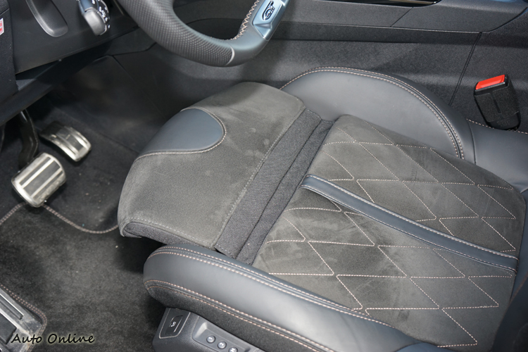 ▲座椅由真皮與麂皮雙材質混搭包覆,觸感舒適。