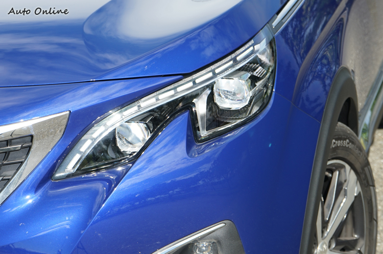 相較於過去比較圓而憨的車頭,新3008在線條造型比較對稱集中之下顯得更為動感與精悍。頭燈採取兩爪式獅爪造型,GT車型更配上了遠近燈雙模式的全LED燈組,燈組上緣很像「虛線」的LED日行燈也相當吸睛。