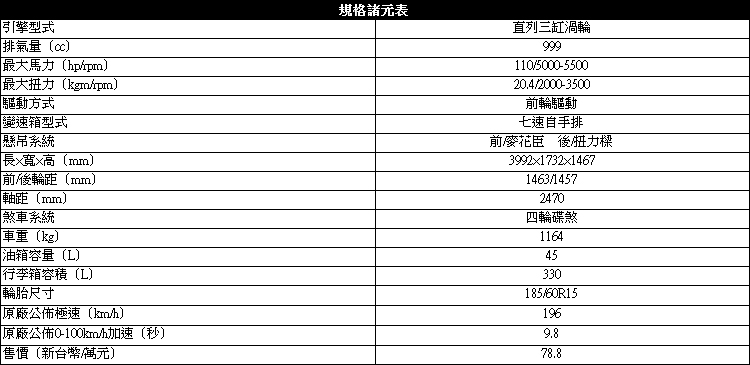 中段加速表現更佳![]() 或許你會覺得奇怪,車款換年式或小改,表現不是應該越來越提升,怎麼反而引擎縮水了?千萬別誤會喔,這具排氣量999cc的1.0 TSI直列三缸汽油渦輪引擎與1.2 TSI相較之下不但最大馬力沒有少,最大扭力更是比過去還要更好的20.4 kgm/2000~3500rpm,並搭配DSG七速自手排變速箱。此外,1.0 TSI重量比1.2 TSI少了15公斤,二氧化碳排放量也少了10g/km。