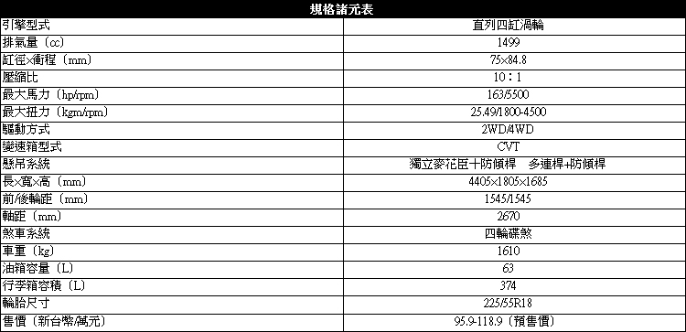 ▲新開發的1.5升渦輪引擎最大馬力與扭力分別為163hp與25.49kgm。