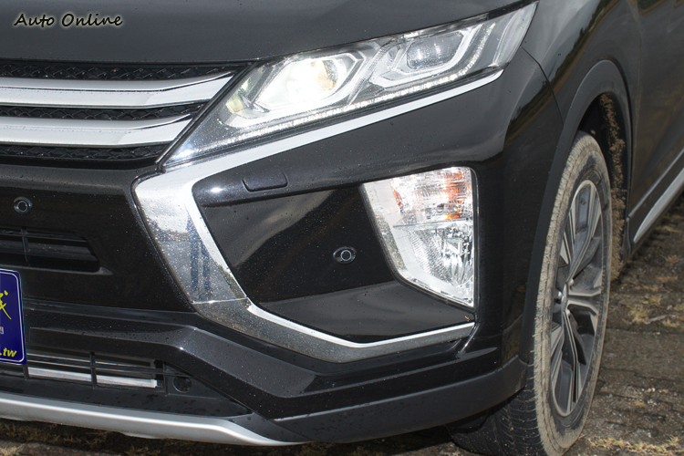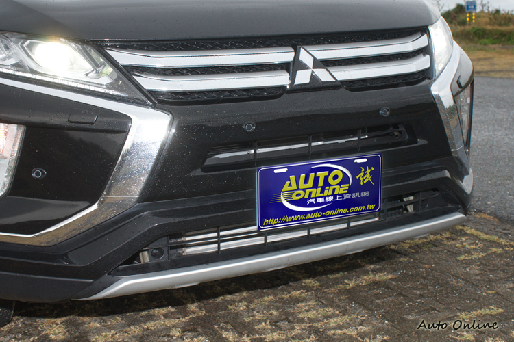 在這種「中小型」車格下,Eclipse Cross走的是比較重運動感的風格。例如車頭雖然跟現行Outlander一樣都採取DYNAMIC SHIELD水箱罩為核心的新世代家族設計,但在頭燈下方則以類似性能車/跑車大型進氣口的造型將霧燈配置於其中,看起來明顯比較具有殺氣。頭燈從中規以上車型都配備附自動水平調整的LED頭燈來搭配LED日行燈。