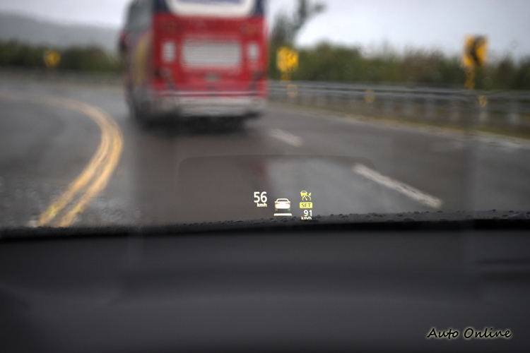 ▲抬頭顯示幕可顯示車速及ACC等與安全相關之訊息。
