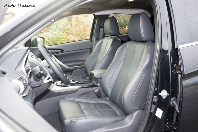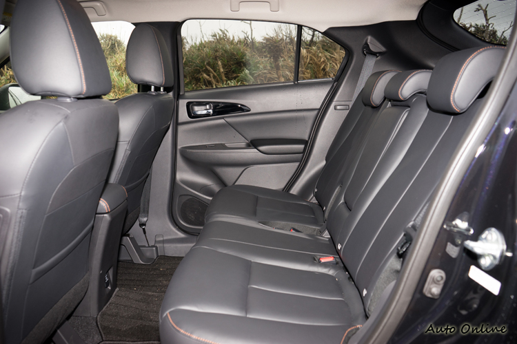 座椅造型基本上與Outlander相同,只是在椅面部分得樣式有所差異。座面寬大,側邊包覆形狀能提供的包覆性不算高;頭枕有向前傾角度,比較有機會支撐到乘客的頭部;駕駛座提供八向電動功能,雙前座椅都有加熱功能。6:4分離的後排座椅可以做20公分範圍的前後調整,椅背車廠是稱可做八段調整,不過簡單實際試調了一下覺得大概三段調整角度是比較明顯的;後座沒有中央扶手的空調出風口,但可從雙前座下方來送風至後座。