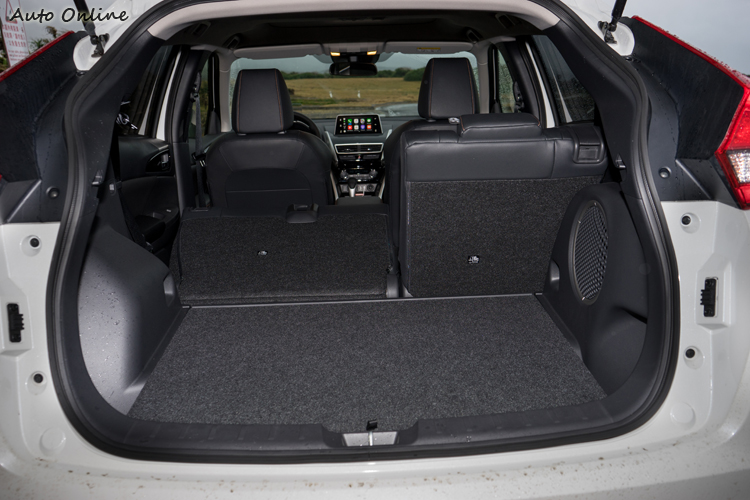 而在行李空間上,行李廂在後座處於標準位置下的收納容量為374公升,即使車身比它略小一點的HONDA HR-V都有437公升,顯得比較吃虧,如果後座不載人或載身材嬌小乘客,後座椅調至最前位置的話,方可得到448公升的空間。但即使如此,因為D柱有大角度傾斜,所以對行李廂空間形狀有不小影響,都讓Eclipse Cross的空間表現比較像掀背車多於像SUV。