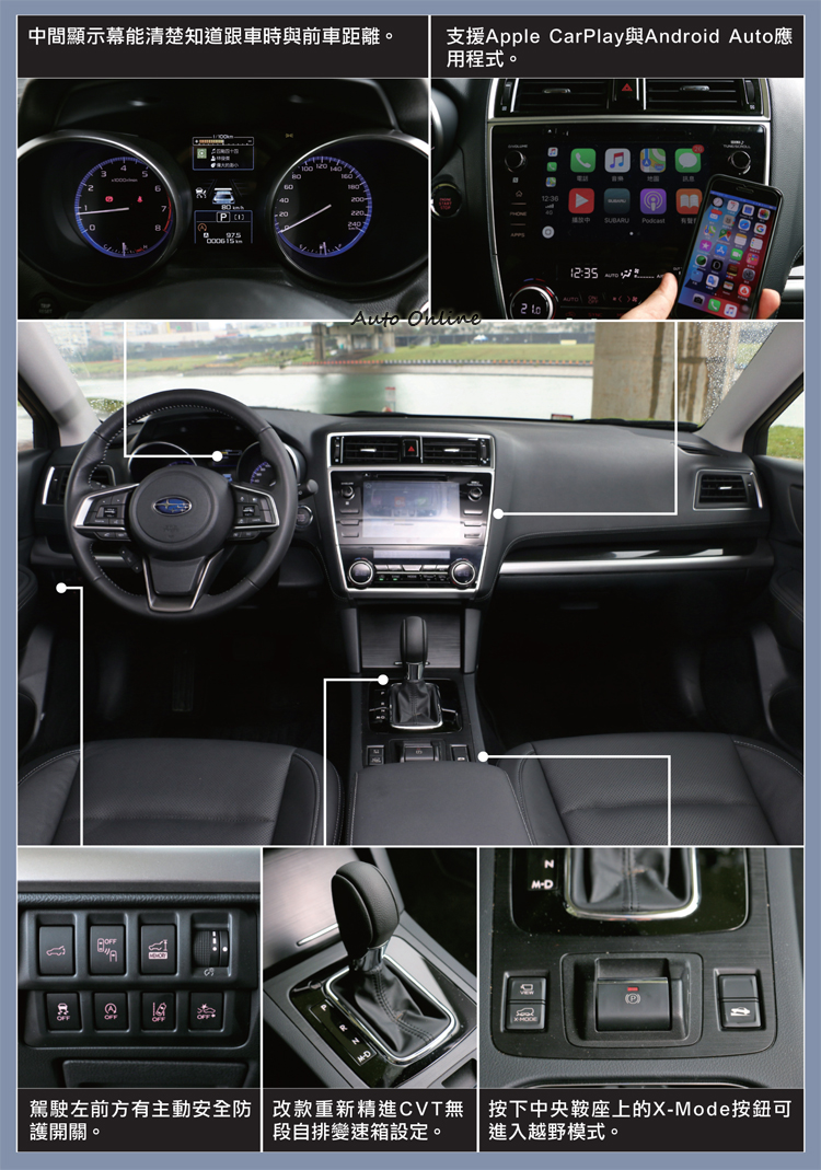 Eyesight導入安全大升級![]() ▲小改款後的Outback最大重點其實是Eyesight主動安全系統。小改款後的Outback最大重點其實是Eyesight主動安全系統,透過前檔風玻璃上方的雙鏡頭能清楚辨別前方狀態,功能包含:在台北市交通狀態實際下測試,Eyesight能精準的保持與前車距離,當前方減速或者停止,電腦都能控制緩慢且精準的停下,輔佐駕駛無意間的錯誤。這套系統會介入制動系統但不會介入轉向系統,也就是可預防前方的碰撞,但是在高速公路上車偏移或者車道偏擺都只有警示,電腦不會介入方向盤來轉向。在這也要呼籲消費者,豐富的主動安全只是輔佐駕駛者,駕駛者還是要專心的注意前方路況,畢竟還正式進入自動駕駛時代,開車的責任還是在駕駛身上,主動安全防護也只站在協助的角色。 ![]() ▲台北市交通狀態實際下測試,Eyesight能精準的保持與前車距離,當前方減速或者停止,電腦都能控制緩慢且精準的停下。