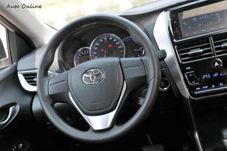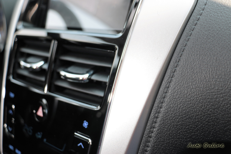 ![]() 進到車內,眼前的一切讓我以為這是新一代Vios,所有的布局都與現行車款不同。車室運用鋼琴烤漆與霧銀材質,以及多處的類皮質縫線點綴,整體質感大幅躍進,這也是Toyota厲害之處,利用塑料模具創造出類似皮革包覆的質感。 ![]() ▲用塑料件打造出類似皮革縫線的中控台樣貌。