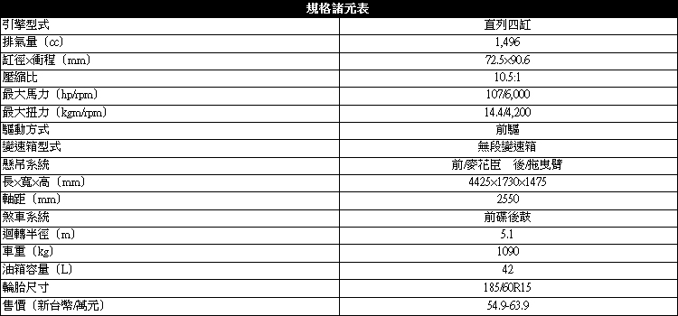 動力不變 增加SPORT MODE運動駕駛模式![]() ▲動力上維持代號2NR-FE引擎,動力數據最大馬力有107ps/6000rpm與最大扭力14.3kgm/4200rpm。動力上維持代號2NR-FE引擎,結合連續可變汽門正時系統,動力數據最大馬力有107ps/6000rpm與最大扭力14.3kgm/4200rpm,搭配上Super CVT-i無段變速系統,透過無間段的齒比轉換加速過程平穩順暢,能連續無頓挫的行進,減少換檔所消耗的引擎動力與燃油耗損, ![]() ▲三輻式方向盤乾淨俐落,右下角有高級車才會出現的定速撥桿。![]() ▲Super CVT-i無段變速系統,電腦能模擬出七速的換檔邏輯。![]() ▲全新導入SPORT MODE運動駕駛模式,可讓油門反應更為靈敏,延後換檔轉速。
