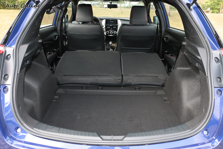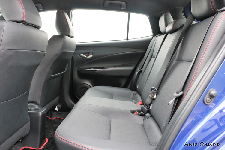 ![]() 進到車內,視覺看上去內裝質感大幅提升,利用飾板改變車內原有的風味。 ![]() ▲中控台有類似高端品牌NX車款的飾條造型。![]() ▲後座空間維持改款前小車大空間,座椅車上紅色縫線散發熱血氛圍。![]() ▲後座椅背有6/4椅背傾倒功能,未傾倒前有310公升。