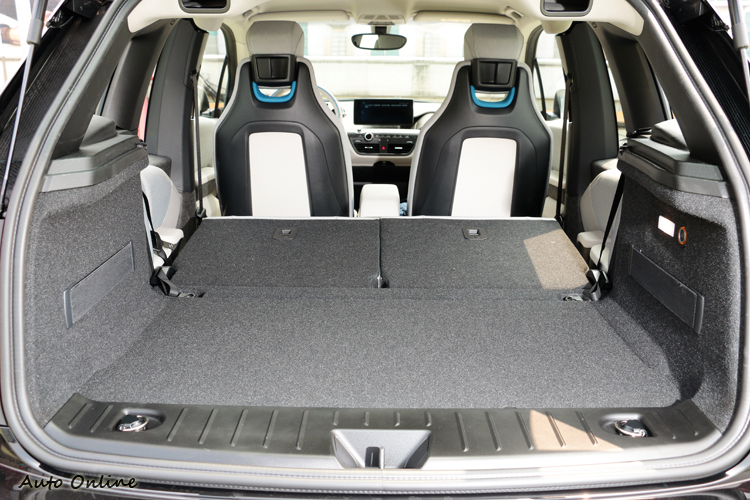 S版本性能加持先前我們試駕過i3 REX版本,車尾配置一具0.65升兩汽缸的引擎來充電增加額外里程數,過程中不太擔心電量慢慢減少,因為當電池電力不夠引擎會啟動幫助電池充電。在純電版本中,就沒有引擎的配置,完全是靠電池電量來走行,這點確實很擔心電量是否能夠完成一天的試駕行程。小改款後的i3更換了電池,原本的60Ah鋰電池替換與Samsung SDI共同開發的94Ah高壓鋰電池組,相同的大小功率提升到33kWh,續航力跟著從原本的130公里左右增加至200公里,當然這也要看駕駛著的風格決定行駛里程。 ![]() ▲提高的電量與輸出功率,搭載之電動馬達擁有184匹德制馬力、27.5公斤米最大扭力,從靜止加速至100公里/小時只需6.9秒。底盤採前麥花臣、後五連桿設計,電池擺放於車底帶來優異的低重心,馬達放於後輪帶來後輪驅動轉向特性。話說i3 S並非以駕駛樂趣為特長,實際山路激烈操駕它的樂趣不亞於其他BMW內燃機車款,指向靈敏、加速輕快,蜿蜒道路可得到品牌強調的駕馭樂趣。只不過激烈駕駛會讓電池耗電量增加,從儀錶中看到可行駛里程快速減少,為了不出現沒電回去的窘境,抑制右腳、回復正常狀態,好好體驗一下純電的行駛樂趣。 ![]() ▲放掉油門後的馬達回充電力,阻力有點類似檔煞的效果,控制得宜在市區幾乎不需要踩煞車。![]() ▲行李廂下方有電動機構模組,沒有多餘的空間置物及擺放備胎。![]() ▲前方有小小的置物空間,左右兩側能快速檢查一些油料以及水量。