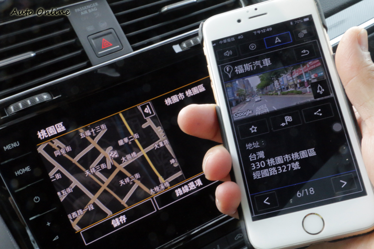 ![]() ▲車系標配的全邏輯數位化儀錶,色彩或許稍嫌低調了點,但功能卻是相當齊全。其實作為一款旅行車,Golf Variant全車系都保有優越的日常使用機能,豐富與便利的配備就是它的特色,其中我們最愛的就是全邏輯數位化儀錶;這組取代傳統類比儀錶的12吋TFT顯示器,可依個人喜好自訂儀錶刻度盤大小與顯示項目,只需眼睛餘光就能觀看導航地圖,除了配色稍嫌不夠大膽鮮艷之外,功能與騷包程度絕對沒話說。 ![]() ▲透過原廠App能夠從手機搜尋目的地之後,再傳給導航車機執行,操作起來更便利。