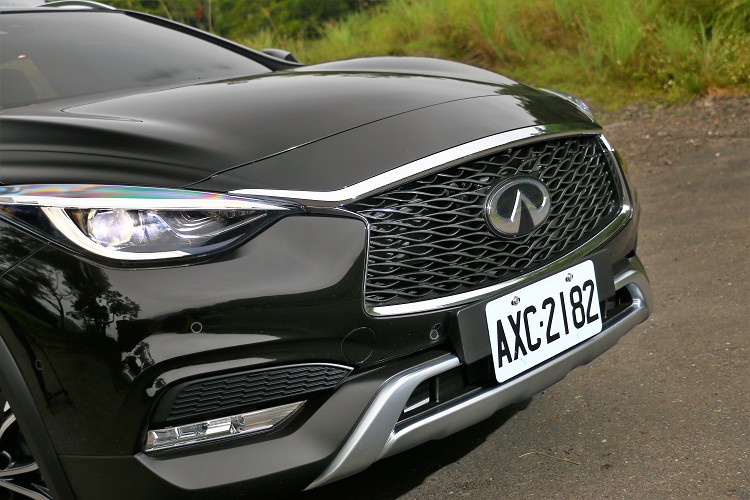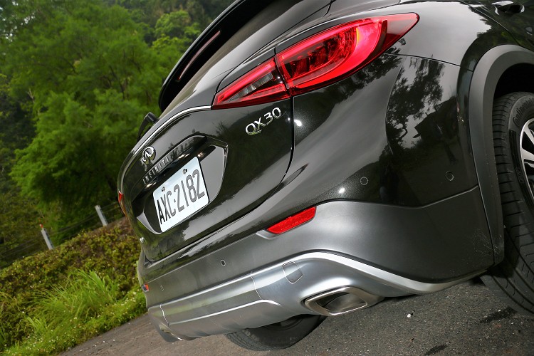 濃縮精巧車身造型從外觀來看,整體感覺與Q30差異不大,多出了許多粗獷越野套件來應付不可預測之路況,車身周圍下方安裝黑色塑料飾板,車頭下方有鋁合金越野套件飾板,避免因為地形造成車身烤漆碰傷。離地高度達到202mm,比起Q30高出35mm,想必在穿越落差路面有更高的通過性,戶外享樂不受到侷限。車頭家族韻味雙弓式水箱護罩,結合左右兩邊守獵者LED頭燈,藉由線條勾勒出Double wave湧浪式車頭,營造出前衛休旅車樣貌。 ![]() ▲車頭家族韻味雙弓式水箱護罩,結合左右兩邊守獵者LED頭燈。![]() ▲C柱上有著家族“Σ”造型鍍鉻飾條特殊意念,是近期Infiniti車款車側的家族特徵。![]() ▲車尾下方雙出排氣尾管及鋁合金越野套件,跨界小型運動休旅有著新的樣貌呈現。![]() ▲QX30搭載的是2.0升渦輪增壓引擎,配置四輪驅動系統,所以不要再說也只有車身高度與品牌的不同而已。