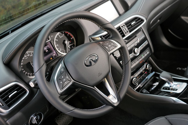 德意志內裝氛圍進到車內發現座椅呈現較厚的姿態,舒適的乘坐感卻影響到頭部空間,有些微的壓迫感。中控台有著德日聯手的結晶,大方向為Infiniti設計美感,小地方則出現德系韻味,包覆Nappa高檔皮革搭配上類麂皮車頂與鋼琴烤漆飾板,高檔質感創造出豪華氛圍。影音系統標準配備7吋整合觸控螢幕、InTouch智慧聯網系統,藉由中央鞍座上的旋鈕操作使用,螢幕提供AVM 360度環景顯示、MOD動態物體偵測、中文化衛星導航(旗艦款搭配)等。 ![]() ▲三輻式方向盤的神韻是不是很像德國某牌,就只差中間的標誌不一樣而已。![]() ▲中控台皮革包覆加上白色車縫線帶來高質感,影音系統標準配備7吋整合觸控螢幕。![]() ▲座椅較厚加上流線車頂有些微的壓迫感。![]() ▲後左椅背偏直對於乘坐舒適性有不小影響。![]() ▲行李廂容量有430公升容積,還提供6/4分離傾倒椅背,小型運動休旅也能有大大置物空間。![]() ▲AVM 360度環景顯示系統,建構出全面性的安全防護。