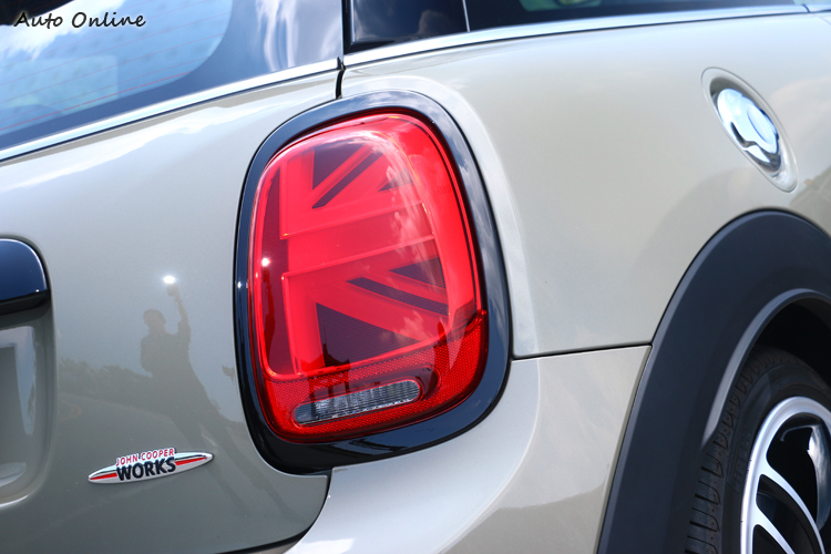 車尾全新Union Jack 英國旗式樣LED尾燈採用嶄新的燈具科技,方向指示燈與煞車燈分別置於橫向與縱向處。