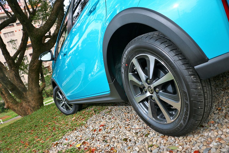 底盤採前麥花臣,後拖曳臂懸吊設定,轉向機構採EPS電子是輔助系統。開起來方向盤力道偏重手,以小車來說,重手能得到直接路感,不會感覺太過於輕浮。加高後的車身高度帶來高重心,想要激烈駕駛側傾會有些嚴重,但在一般道路上,提升了乘坐舒適性。另外,在未鋪裝的路面上,加高後更能忘我的隨心隨越,不過要小心它並非四輪驅動越野車,還是需要思考一下選擇路況。