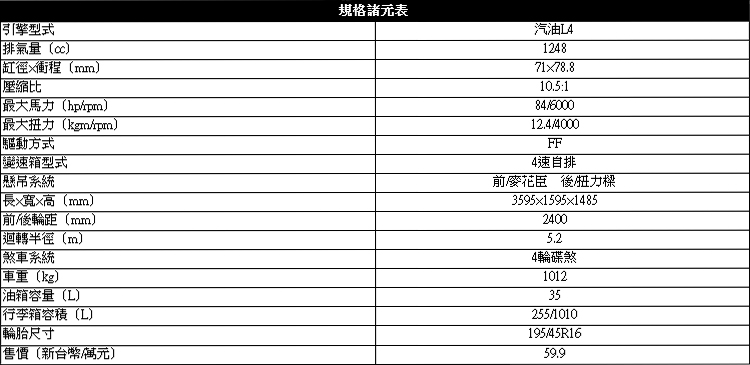 孱弱動力的妥協![]() ▲1.25升的排氣量讓它失去節稅優勢,省油性也不算特別傑出。再來談到動力組合,這或許是Picanto最大的弱點,因為所有數據都看不出來有什麼值得一提的亮點。或許是為了售價考量的緣故,這次台灣森那美起亞並沒有引進歐規的1.0升三汽缸T-GDI引擎,而是依舊讓Picanto沿用1.25升MPI多點供油噴射引擎和4速自排,稅金等級討不到便宜就算了,整體動力輸出也沒有明顯改善,最大馬力84ps/6000rpm、最大扭力12.4kgm/4000rpm的數據與和前代國產版完全相同。至於測試油耗雖然讓它取得一級的能源效率的認證,不過以這樣的羽量級只能繳出16.7km/L的成績,在這個年代只能稱得上差強人意。 ![]() ▲除非經常需要上山,否則這具引擎的動力性能應該足以應付日常所需。