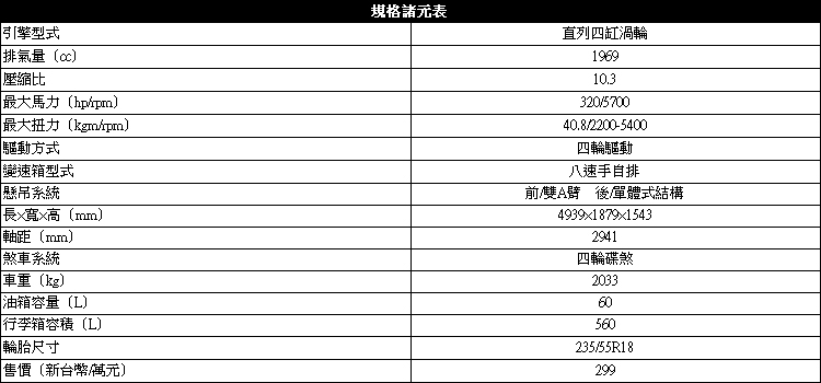 而離開越野場地回到一般道路,性能發揮與快意中完全不失舒適的行路自然更是游刃有餘。動力系統夠聰明,油門反應到位,動力輸出的敏銳或緩和都很能符合駕駛者的預期。而在Dynamic運動駕駛模式下,變速箱更是讓轉速直拉上6000轉左右才升檔,積極地將扭力榨出。