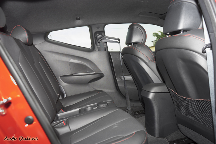 而後排座椅雖然只有一個車門可以進出,但其實是可以提供兩名成人乘坐的設定,而不是一些小Coupe那種後座屬於「+2」座椅,只能給小孩子乘坐。只不過頭部空間受到造型設計影響顯得比較侷促。