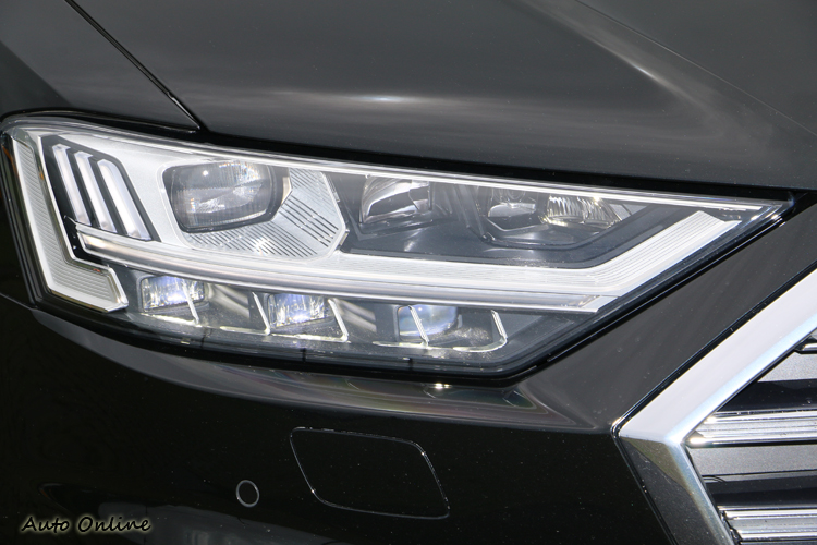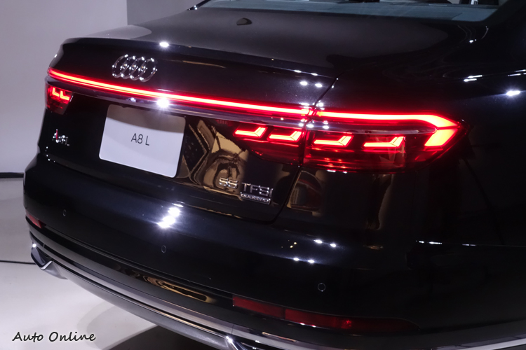 新一代的A8在造型上有不少亮點,充滿科技味的外觀展現出Audi細膩的設計哲學,長軸版的車長超過5.3m,卻沒有一絲臃腫老態,車身比例極富運動感,甚至還帶點雙門跑車的味道。整張前臉因為挺直的車頭清楚地散發出果決的神情,從車輛上鎖和解鎖開始,車頭和車尾的燈光秀,就讓A8L成為街頭矚目的焦點,就算靜止不動,簡潔銳利的外觀就成功達到聚焦的目的,Audi果真是最會玩弄燈光技術的車廠。