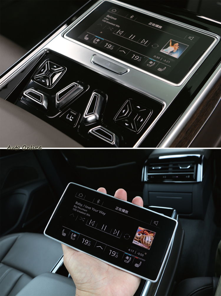 ![]() ▲專為後座買家打造的長軸版,空間和舒適無可挑剔。由於加長軸距的關係,後座腿部空間真的超大,就算翹起二郎腿也完全碰不到前座椅。雙後座椅和前座一樣,也具備通風、加熱、腰靠、電動調整功能,中央扶手還嵌入一組可拆卸的5.7吋OLED小平板,除了能直接調整前乘客座,還能控制天窗、捲簾、空調、多媒體、照明功能,不愧是專為大老闆設想的豪華代步車。 ![]() ▲專屬後座的小平板用於控制多項舒適配備,使用上相當便利。![]() ▲內裝用料保有座艙的家居氛圍,無論視覺或觸感品質都相當好。