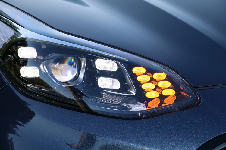 內外硬體變更幅度有限![]() ▲車頭加入鍍鉻飾條,立體化的虎鼻水箱罩網格更顯個性。和改款前相比,外觀沒有重大改變,不過前後燈組內部經過重新設計,GT-Line的前後保桿和水箱罩內部網格也更換為新式設計,並且搭配鍍鉻飾條的點綴。另外,GT-Line車型專屬的四點式LED設計原本只在前霧燈上看得到,如今連頭燈內部也加入這樣的特徵。如以整體呈現的風格而言,個人會認為改款前強調的是霸氣外露,改款後則加強質感與精緻。 ![]() ▲新造型保桿應用飾條點綴,燈組也進行重新設計。![]() ▲GT-Line專屬的四點式LED設計在頭燈內部也看得到。