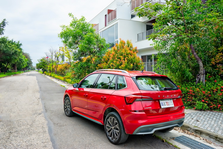 車側與車尾則不管是LED尾燈、車身腰線、車身下方造型折線與行李廂蓋造型都大致維持在之前Vision X概念車的設計,讓它在方正線條的主調中仍能顯出年輕與個性的一面,筆者個人認為Kamiq比較為中規中矩的Karoq還能跳出自己的特色。