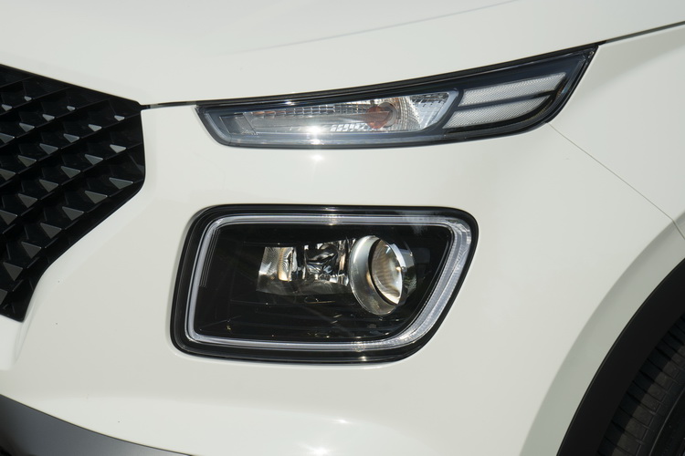 分離式頭燈設計手法與Kona相同,將投射式大燈與日行燈分開,頂規的GLC車型還圍了一圈LED日行燈環,來強化潮品風格,而且還有轉向輔助照明。尾燈則是在GLC車型上才有LED燈。水箱罩依車型等級/雙色或單色調車身而有十字鍍鉻與三角星綴兩種不同造型,以試駕車上的三角星綴圖案來說,給人密集而精緻的視覺感,也很類似LEXUS等品牌的水箱罩造型設計風格。