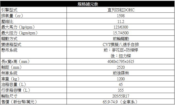 不過與其說是對這具新1.6升引擎,倒不如說是對這具新變速箱更感到驚艷,在模擬八速檔位的設定之下,減速比寬廣,低速下可以很快拉起車速,高速下又能以低引擎轉速來維持巡航狀態。雖然試駕時感覺二、三檔間落差略大,不過對整體動力銜接過程來說影響有限。更重要的是上下檔位間的切換過程夠迅速,讓動力的增減變化在常用速域下符合車主駕駛時的期待。剎車系統在踏板踩到末段行程時的制動力道偏軟,可能是試駕車上煞車碟盤/來令片太新,磨合還不太夠,應是個別問題。