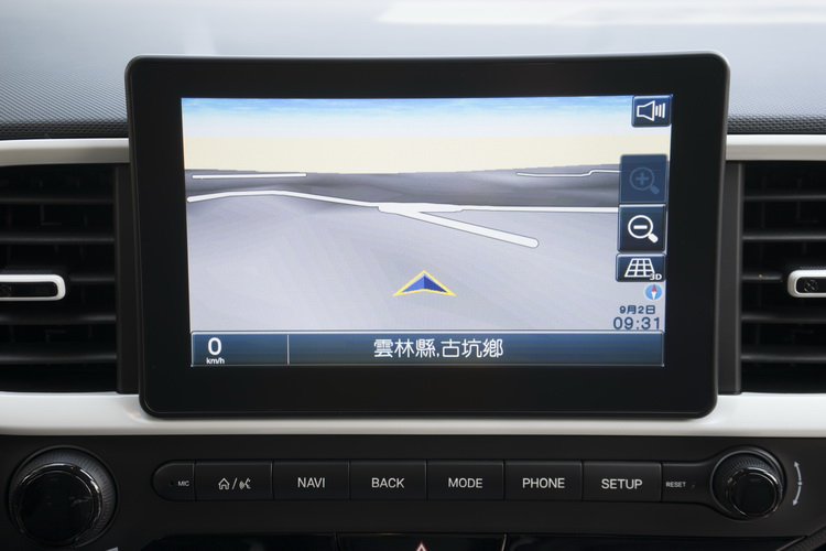 中控台上配置八吋懸浮式觸控影音螢幕,主要功能包括USB影片、音樂 (藍芽與USB)撥放、手機免持電話撥接、導航與倒車顯影功能。導航部分跟其他國內銷售的HYUNDAI車款一樣是使用PAPAGO的PureNavi S1車載導航系統,使用起來沒什麼大Trouble。不過試駕途中發現,因為螢幕是直立式加上沒有做什麼遮光措施,所以遇到陽光在某些角度的照射之下反光情況不輕,還蠻影響閱讀的。