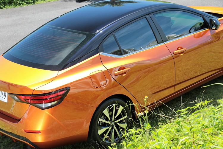 第一眼看到第八代Nissan Sentra時,頓時有點分不清楚是Altima還是Sentra,因為兩者真的非常相像。仔細端倪之後,能發現除了車身尺寸外,前後尾燈造型、細節線條不同之外,其餘都大同小異,難怪現在外面流傳著小Altima之稱號。外觀承襲家族V-Motion 2.0鍍鉻水箱護罩,搭配鷹式LED陣列式頭燈、雙色切削式鋁圈、懸浮式車頂以及帶有微微向上揚起的翹臀,展現出運動化氣息。