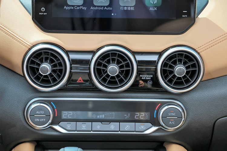 進到車內能感受到老大哥的影子,中控台的整體布局如同Altima大氣、有型,唯一不同之處是冷氣出風口從方形改為Sentra專屬的圓形。中控台上方搭載領先對手的九吋觸控螢幕,並且率先在國產車上導入無線Apple CarPlay系統,上一次看到此配備是在BMW車款上。駕駛操作介面人性化且易懂,方向盤上方控制按鍵、冷氣介面、排檔桿、儀表板等,使用、判讀無壓力又能輕易上手。