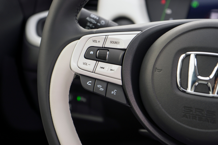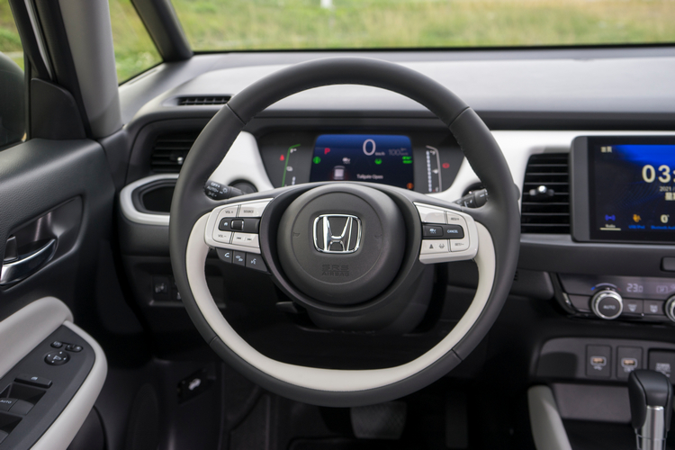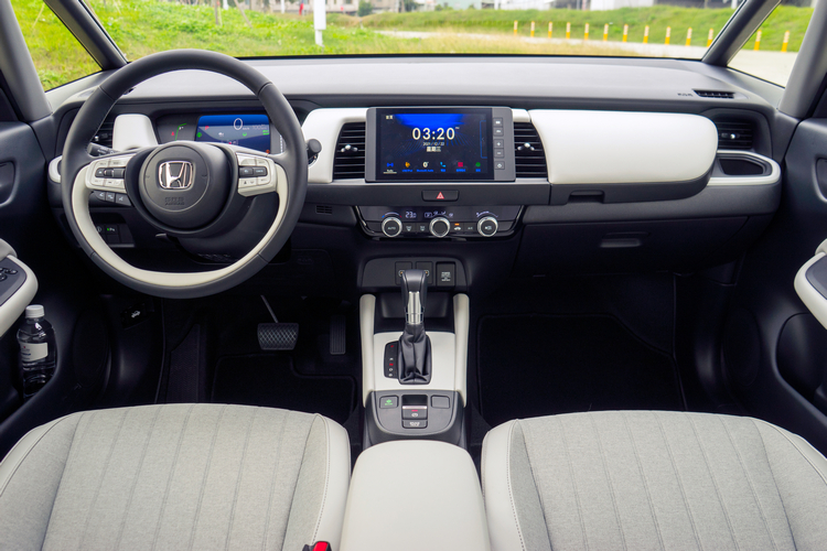 當然,Fit e:HEV除了動力之外還有幾處與1.5L汽油版車型不同之處與配備差異。像是增加了盲點偵測警示系統與駕駛座膝部氣囊(全車共七氣囊)、智慧型車門啟閉、離開自動上鎖功能等。這次試駕車上看起來很有質感的「冰河白」內裝,則需加價12000元選配,但現在有限時免費升級的優惠方案。