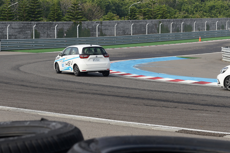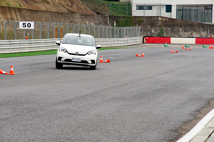 而在繞錐關卡中,雖然是處於場地略濕、輪胎非抓地力取向性能胎等不利狀態。但反倒讓人藉機感受到車子懸吊不錯的平衡性以及可變轉向齒比方向盤(e:HEV版才有)確保了車子轉向的能力與靈活性。