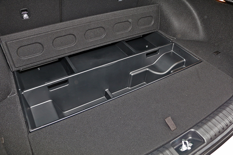 ▲行李廂隱藏儲物格幾乎是各家旅行車必備設計,不過受限於下方電池,能預留的容積會比較淺。