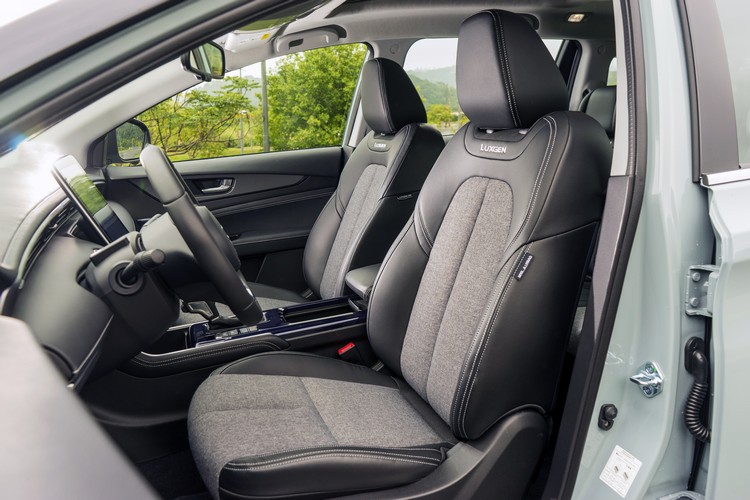 內裝部分,所配的LUXGEN CARE+座椅表面採皮革混搭歐風織紋的銀灰色羊毛布。加上精緻的手工銀色車縫線,觸感柔軟且比皮革有更好的身體固定性(不易滑動)。在長途乘坐時較不易悶熱,且更加耐用、防污、防潑水,對內裝清潔度很在意的車主應該會很高興。內部多層次紓壓材質的應用強化了左右支撐性、乘坐包覆感與備優越的吸震性。坐墊長度也比過去增加了2公分,對大腿支撐多了一分。車門換上新飾板造型且車門及中央鞍座都改採深藍色飾板。