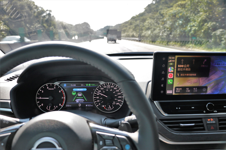 進到車內,Nissan設計風格相當強烈,以功能性、實用性為出發點。改款後,中控台的8吋螢幕升級為12.3吋,操作系統介面更新,並且支援無線Apple CarPlay和Android Auto;而當你手機正在連線耗電量增加,排檔桿前方新增設無線充電座,最高可達15w的充電速度,無須準備凌亂的線材為手機充電。另外,中央鞍座椅及車門飾板都施以高質感鋼琴烤漆處理,搭配上原本的深色木紋飾板,展現出高級感。