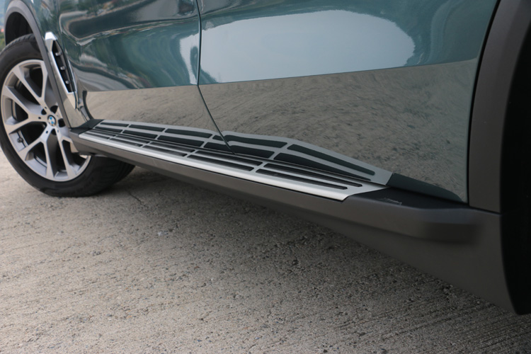 回到車身外觀來看,搭載xLine套件的X5,與它休旅車格非常相符,停在戶外露營地也不顯得突兀。車頭透過鍍鉻飾條點綴,有一個類似英文字母U的主要辨識度,雙腎形水箱護罩也是用鍍鉻材質妝點,與M Sport的跑格氛圍有很大不同。來到車側,為了要方便上下車,配備鍍鉻燈車踏板,嬌小或者老年者可輕鬆登車,而不是爬上去。另外,車輪上的輪弧採用黑色塑料材質,M Sport則會施以車身同色烤漆處理。來到車尾,只有車尾銘牌的差異,後保桿材質、造型完全相同。