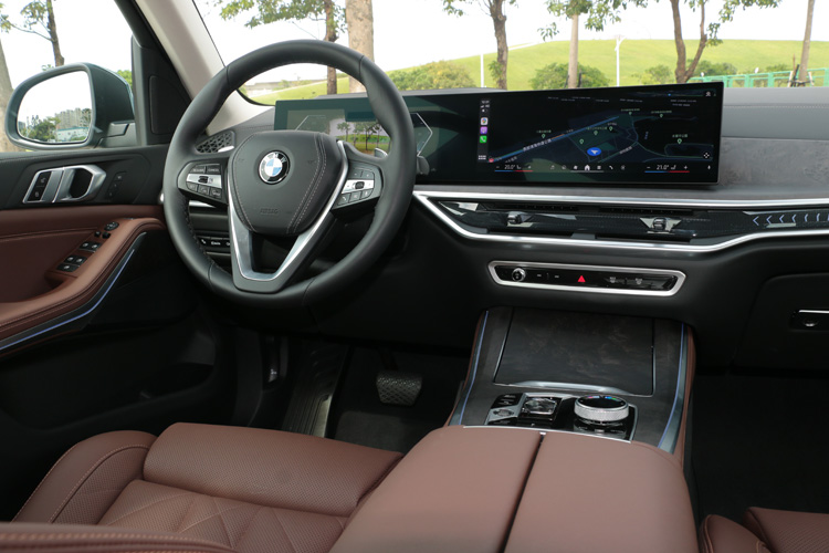 進到車內,維持BMW家族化一貫作風,採用12.3吋數位儀表板和14.9吋中控觸控螢幕營造出大型曲面螢幕。儀錶板可隨著駕駛者需求進行畫面風格切換,較可惜沒有傳統雙圓樣式,設計感強烈的圖式完全取代經典。中控台螢幕使用全新BMW Operating System 8.5介面,操作起來相當直覺,邏輯就像智慧型手機,可更換主畫面功能,當然Apple Carplay連接也不可少。xLine車型上,少了全景天窗與黑色頂蓬,音響系統的揚聲器只有10支,也沒有harman/kardon音響系統等。