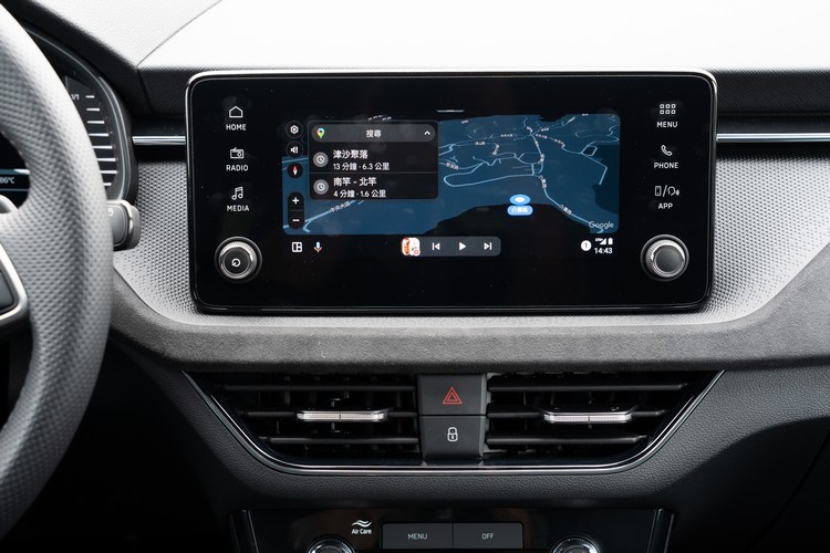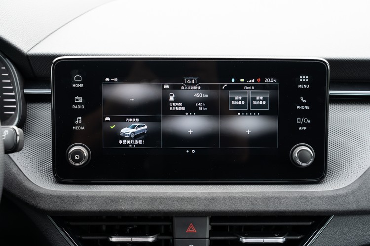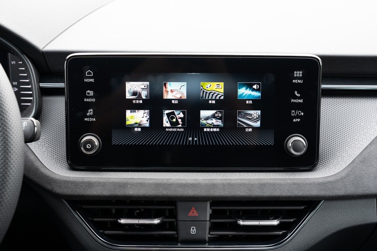 中控台配置懸浮式8.25吋彩色觸控螢幕的MIB多媒體資訊娛樂系統,比改款前的八吋只多出0.25吋當然稱不上什麼「升級加大」,不過系統在畫面與功能上還是有做一些修改;首頁是自訂的快捷功能與相關資訊顯示(按HOME鍵進入),而完整的功能選單(按MENU鍵進入)則在另一頁面。使用起來還算易懂、方便。而在有線連結之外,系統也支援無線的Apple Carplay與Android Auto連結操作。