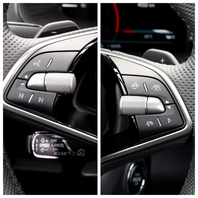▲側滾輪與按鈕控制媒體、音量與聲控,右側控制Travel Assist、ACC與儀錶板畫面切換