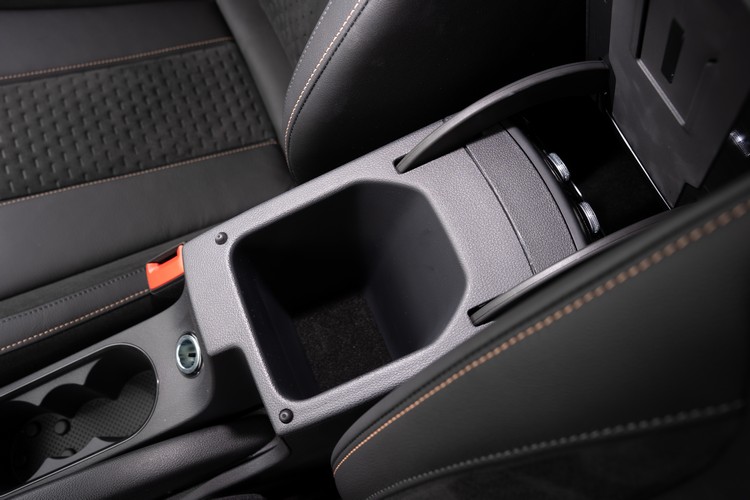 ▲中央扶手下的置物空間不大但形狀算方正