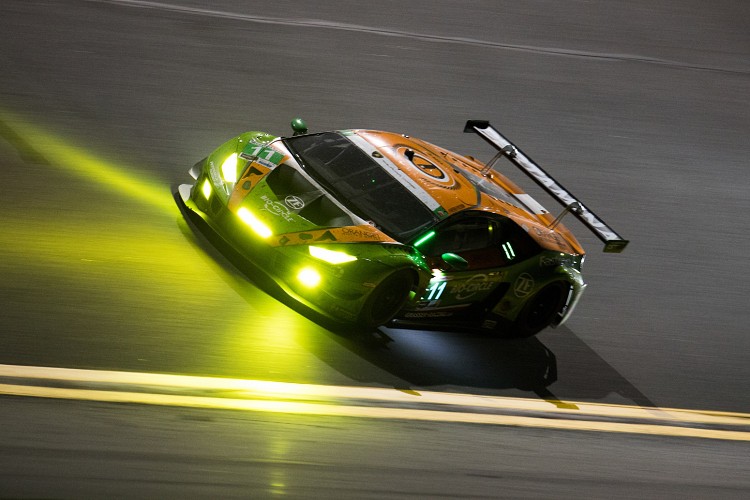 美國東岸當地時間1月26日午後,2019年度 Daytona 24小時耐久賽於佛羅里達的Daytona國際賽道上一觸即發。隸屬於Grasser Racing Team 的賽車手Rolf Ineichen,駕駛編號11號的Huracán GT3 EVO ,自第五排位發車,甫一開賽即展現強大的實力與極快節奏,超越編號46號的Huracán GT3 EVO,來到第三排位,並不斷向前展開炙烈追擊,直到判罰暫停之前,皆以首車之姿領先群雄。Rolf Ineichen交棒隊友Rik Breukers 後,一度來到第十六排位,經過一番雄鬥,在賽程第七小時結束前回到前方戰場,展開激烈爭位戰;在Lamborghini原廠車手Mirko Bortolotti接棒後,奮力抵禦後方對手的猛烈追擊,直到賽事因連夜的大雨暫停前,以毫秒之差領先,保持在排位第四。