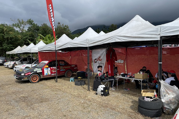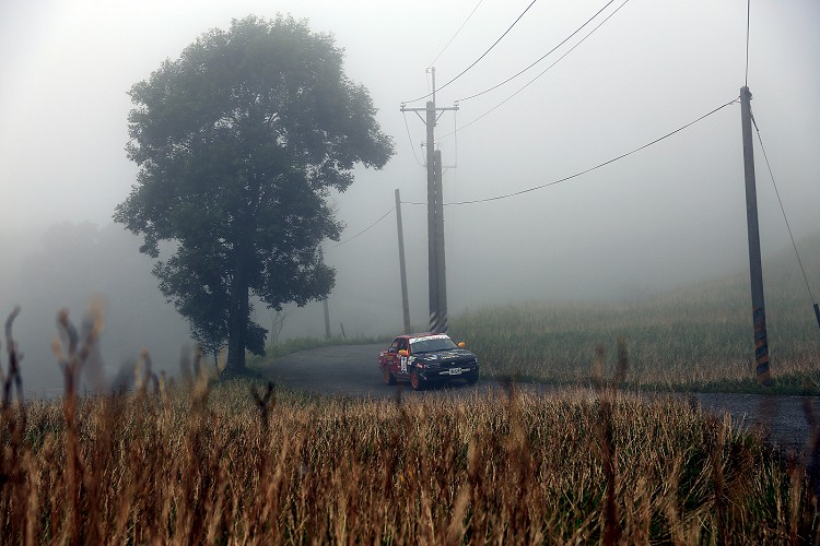 第一個Stage天空不作美下起了雨,下雨最怕就是前擋風玻璃起霧,賽前準備的強力風扇起了作用,也料想到會下雨,輪胎換上普利司通RE-71RS,特殊的花紋加上膠料配方,兼顧乾地與濕地的性能表現,雖然胎壁無法像拉力胎般硬、紮實,應付台灣的拉力路況還算夠用。就在強力風扇與RE-71RS幫助下,第一回合順利完賽,第二天下午的Stage,也在細雨與濃霧的氣候下,達成預設目標安全把賽車開回集結區。