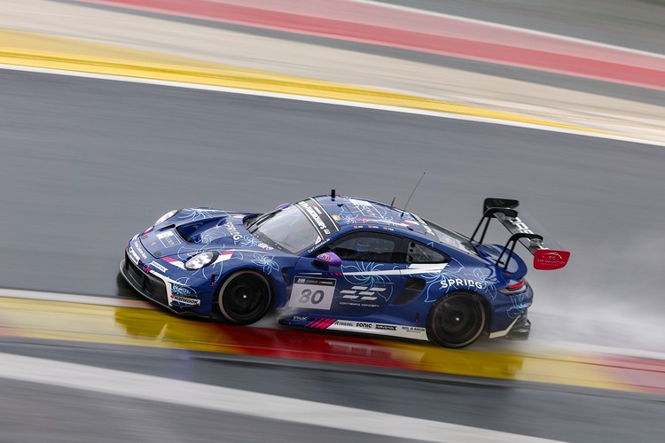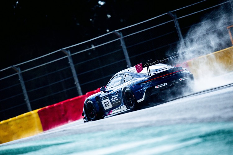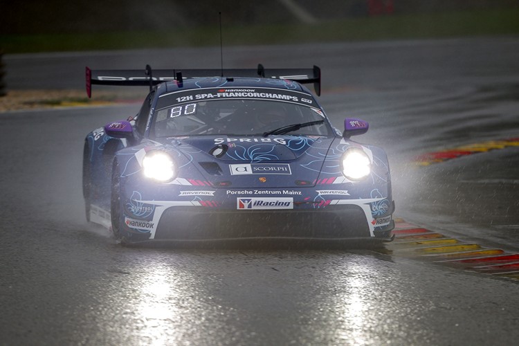 著名的比利時Spa-Francorchamps賽道長度7公里,週五練習中就開始出現雨勢和間歇性降雪,不過這一切阻止不了三人在排位賽中跑出桿位的好成績。12小時的正賽是以兩個階段進行(週六 5 小時和周日 7 小時),並且在雨霧夾雜中開賽,一開始#80仍能保持領先,不過隨之而來的技術問題和溼地中的低抓地力,賽車在第一個小時名次就開始往後掉;由於區天駿進站時剛好遇到安全車出來處理事故,導致累積進站時間比120分鐘的限制還多出幾秒鐘,因此被罰60秒停靠,名次一度掉到18名。