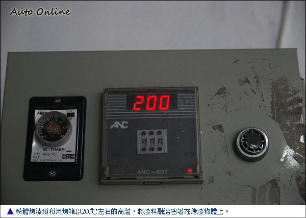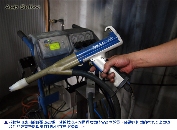 ![]() ▲粉體烤漆其漆料純粹就是粉體狀態。粉體烤漆廠須具有一座可達200℃以上溫度的烤箱,還要有一具粉體烤漆專用的靜電塗裝機,再來還要有一項粉體漆料回收裝置,基本上俱備以上三項器具,再加上烤漆師傅的經驗、技術,即可完成一精美的烤漆成品。